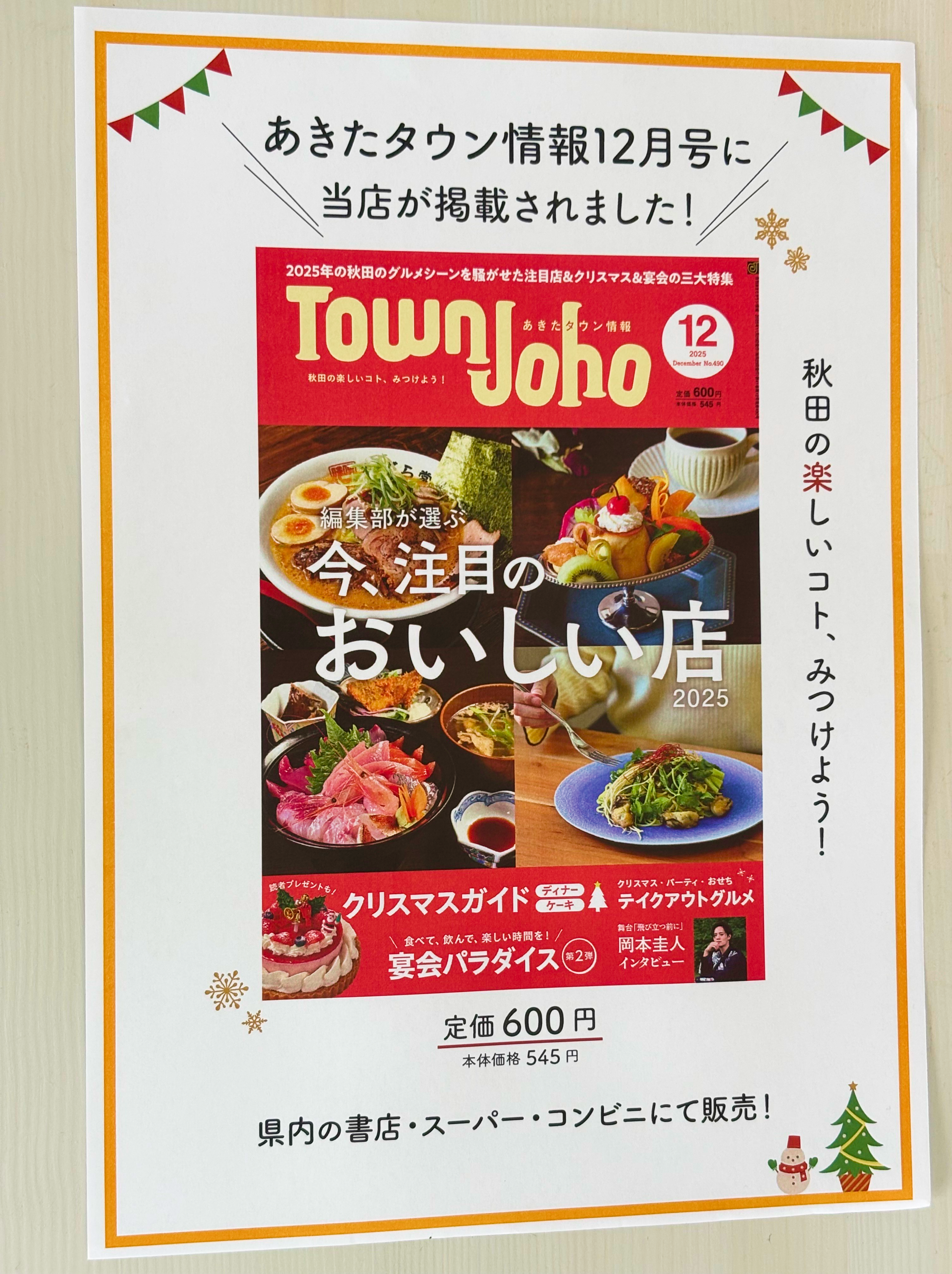 2025年11月25日「あきたタウン情報2025年12月号」に掲載されました。